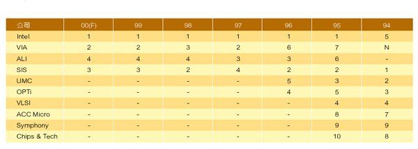 其中 VIA(威盛)、ALi(揚智)、SiS(矽統)與UMC(聯電)皆為台廠