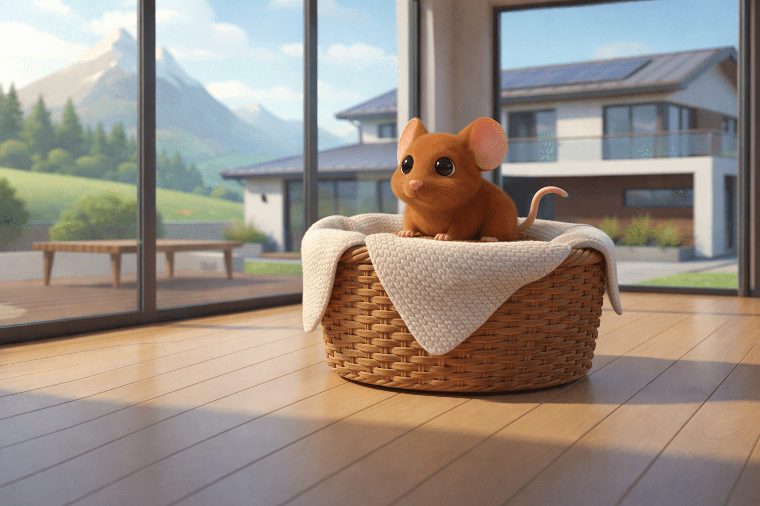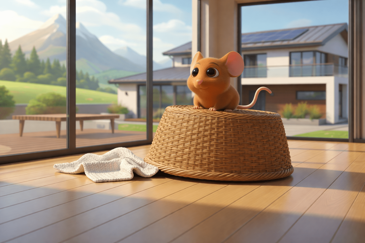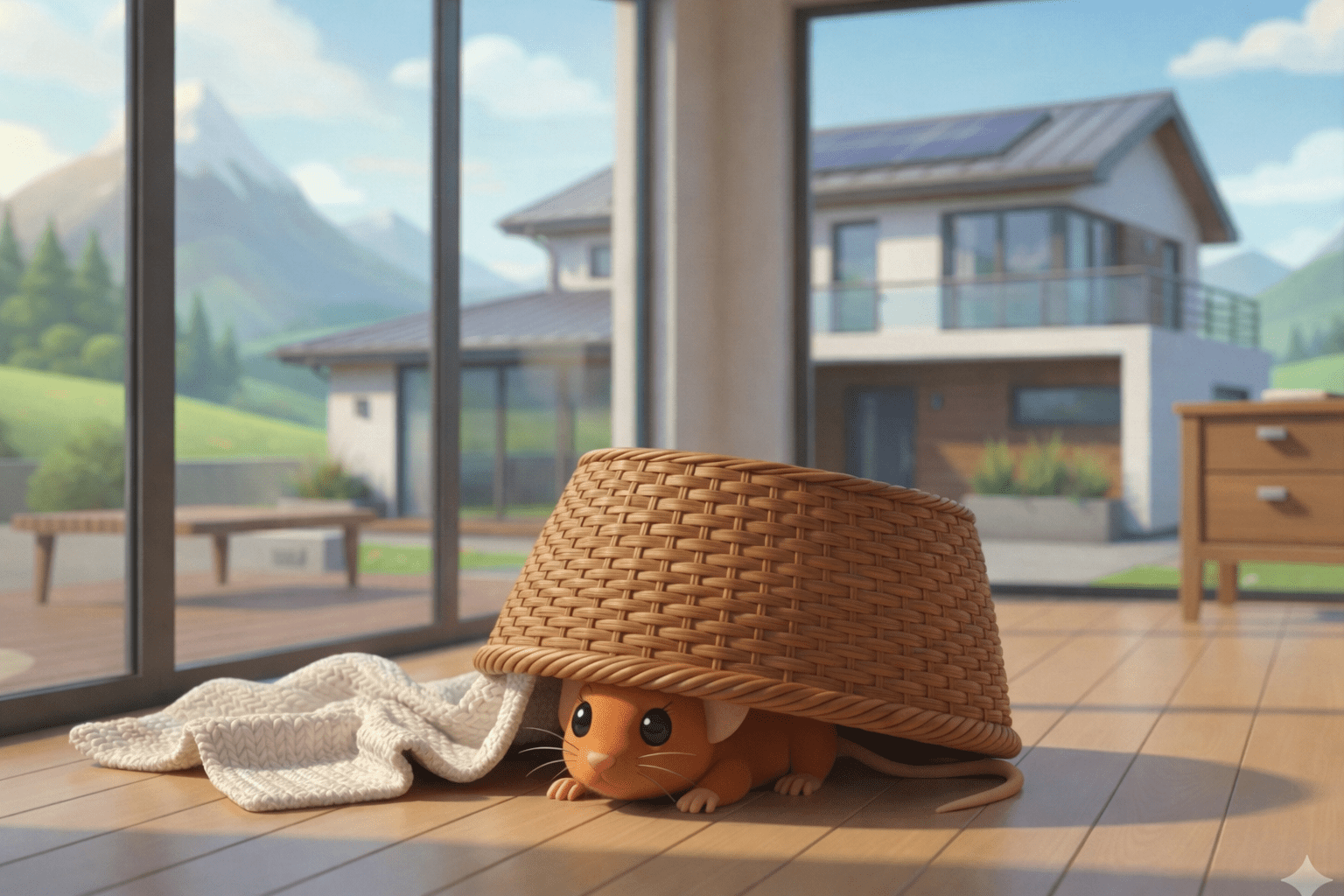 Die Maus ist ______ dem Korb.