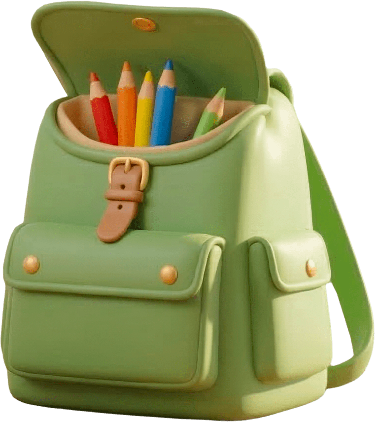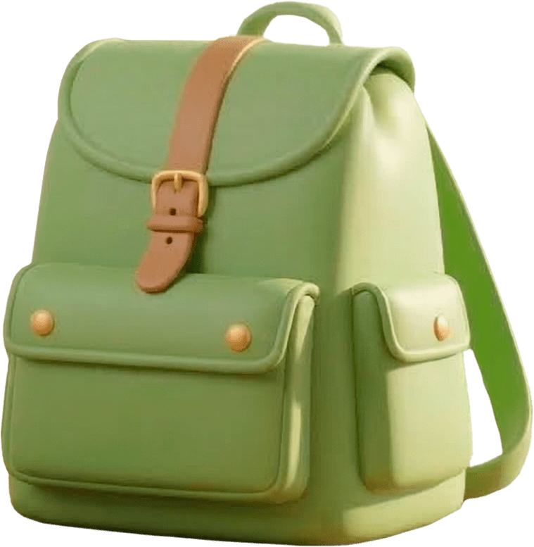 Ich habe einen Rucksack. Er ist grün.