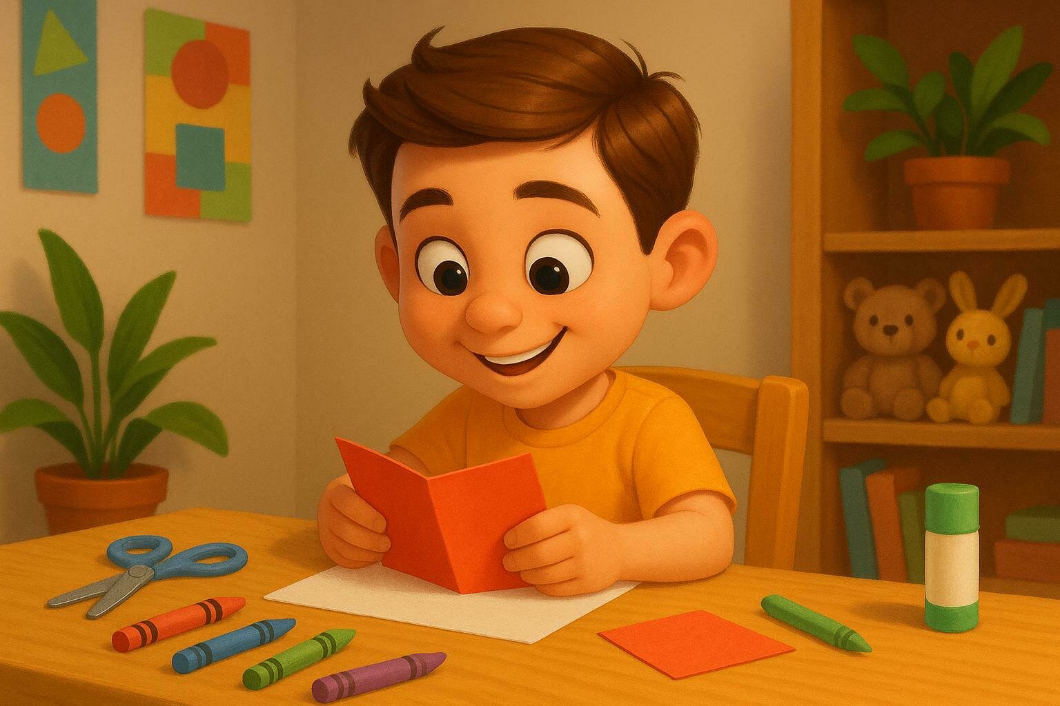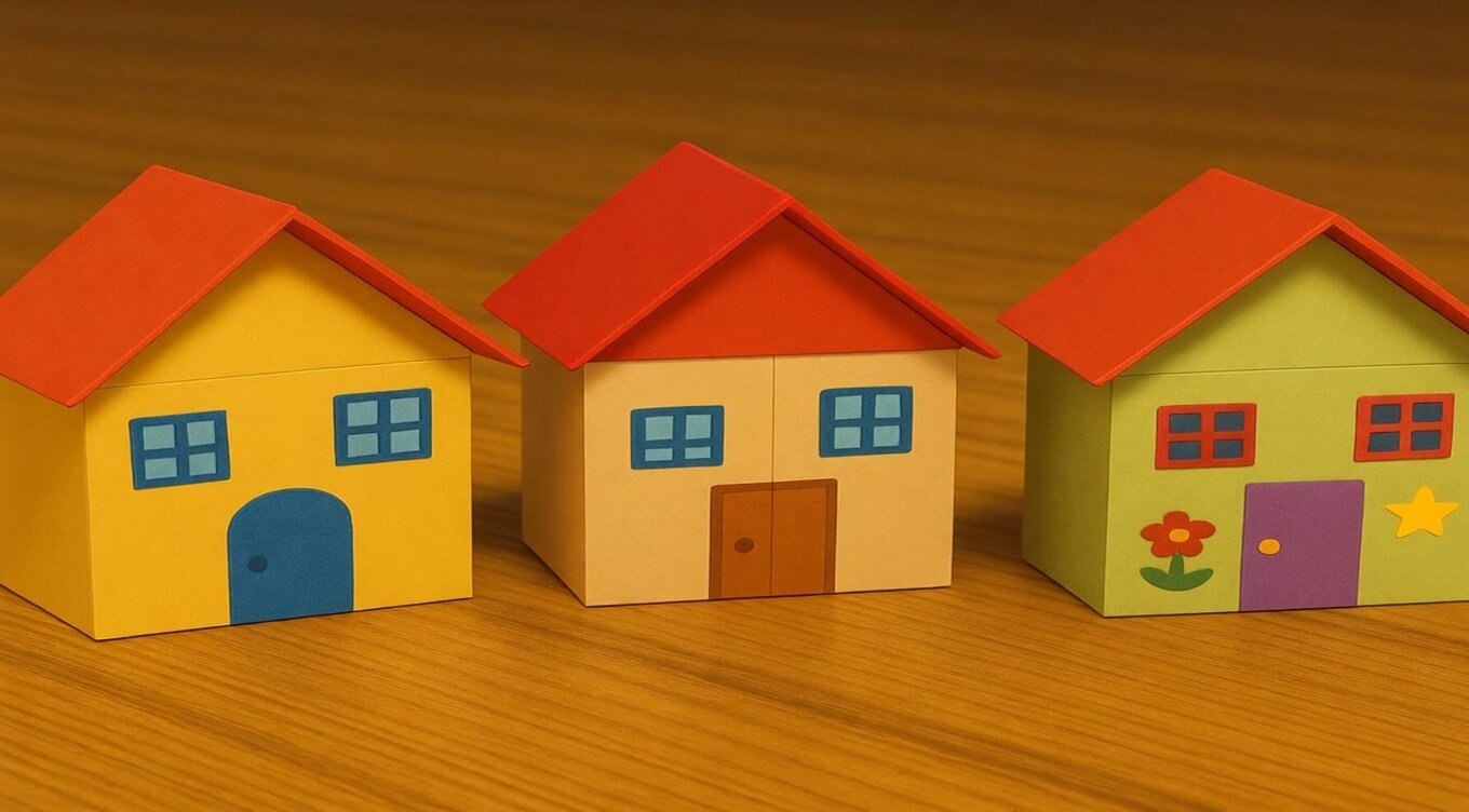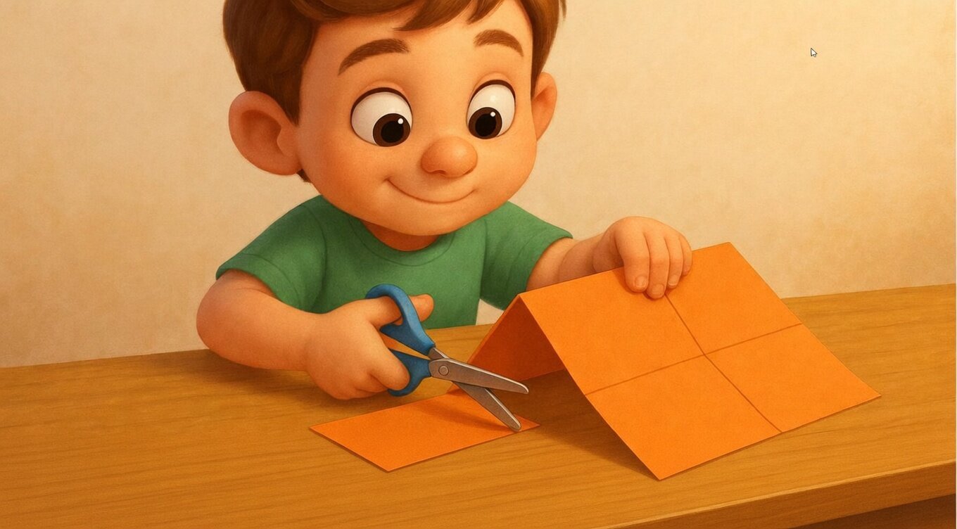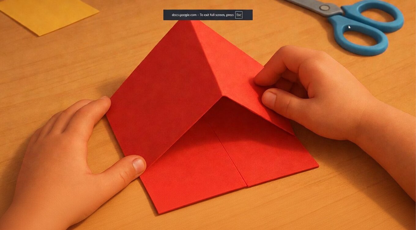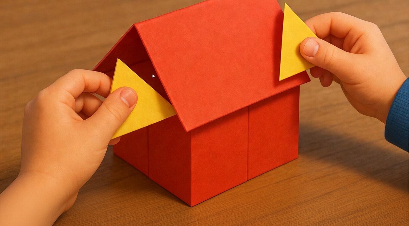 Now, take another piece of paper and fold it from the center to form a triangle (like a pyramid). This will be the roof of your house.