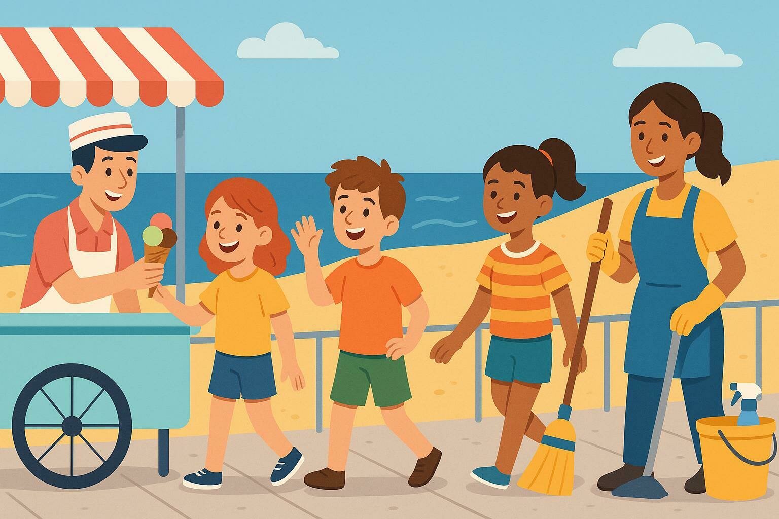 I would like to be an ice cream seller, because I like working outside and giving people cold treats.