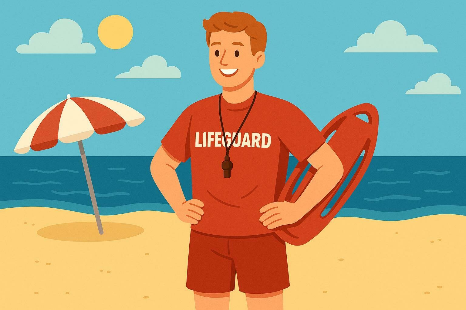 Watches swimmers at the pool or beach and helps them if they are in danger.