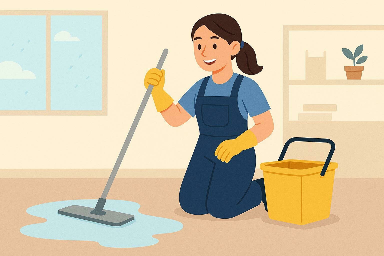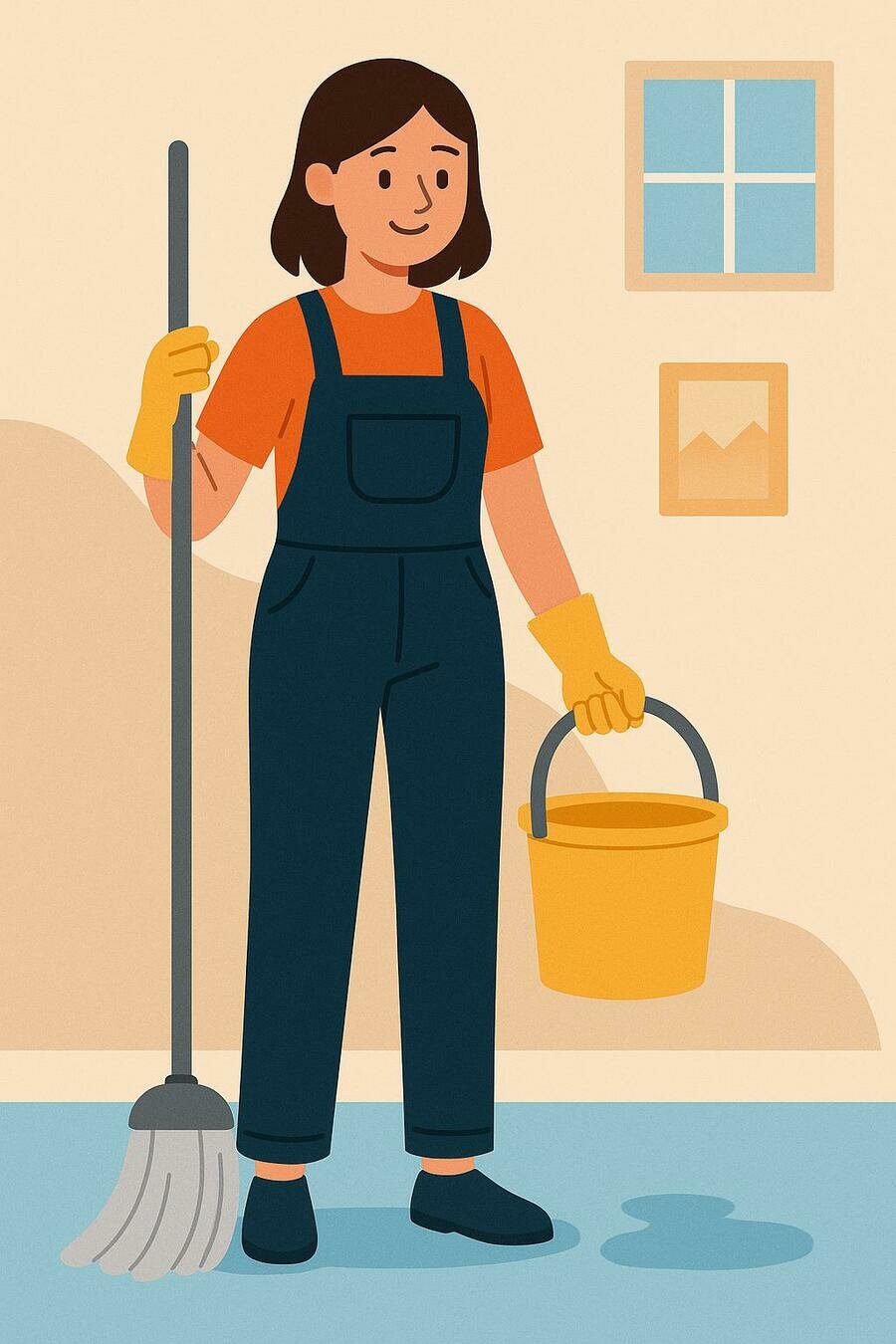 Sweeps, mops, and keeps places clean.