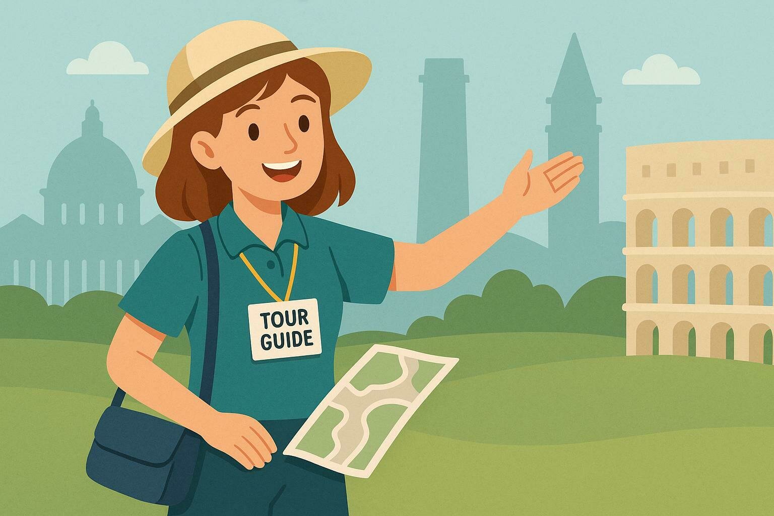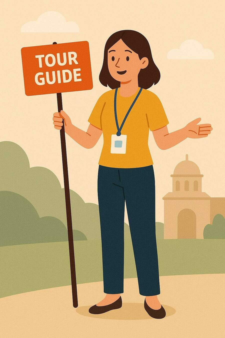 Shows visitors around museums, cities, or landmarks and gives information.