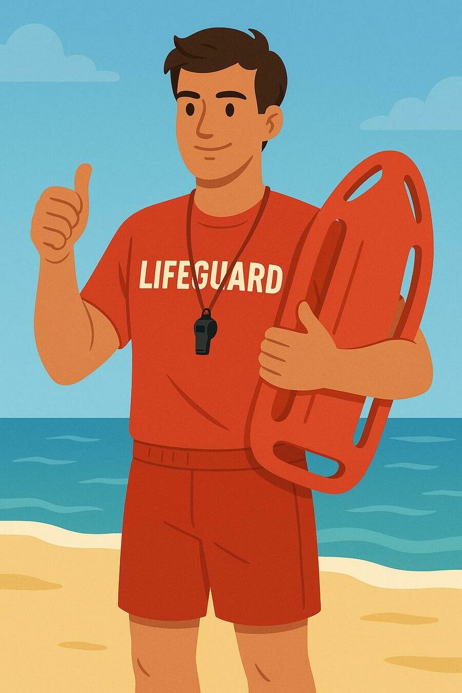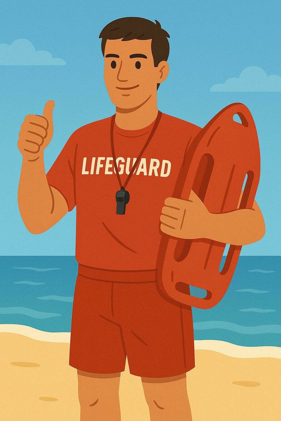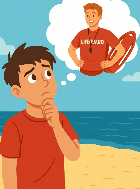 My best friend Tom wants to be a lifeguard. He loves swimming and wants to help people at the beach.