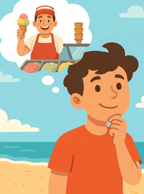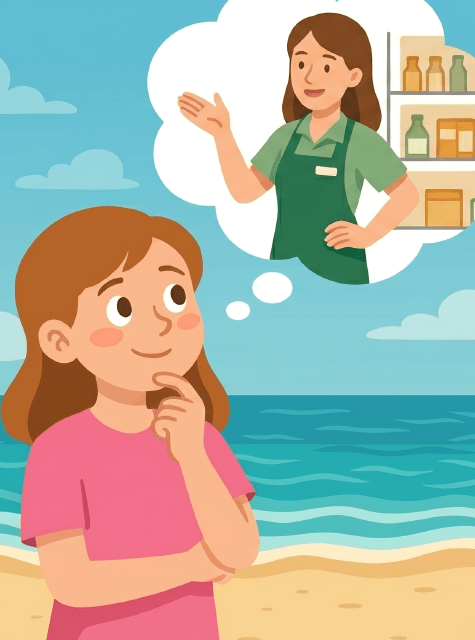 My sister Lily wants to be an ice cream seller. She thinks it’s fun to work outside and give people sweet, cold treats.