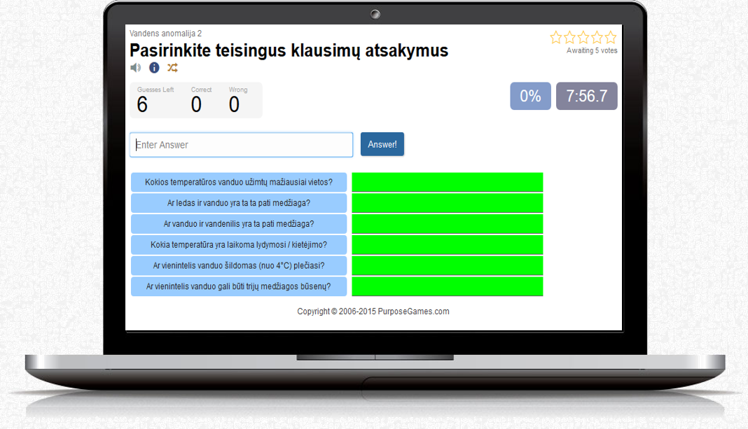„Vandens šiluminio plėtimosi ypatumai“