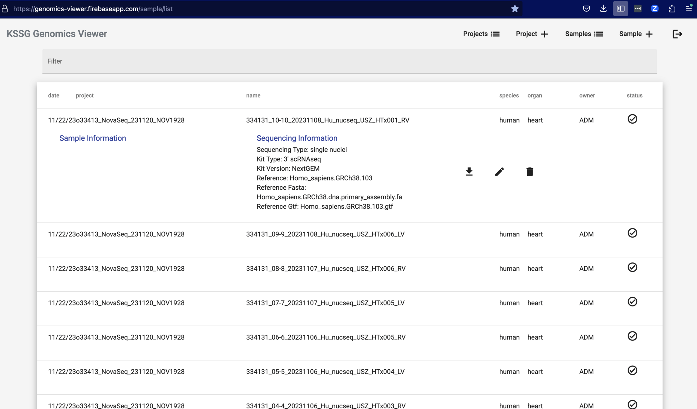 Web App to access and edit database with all samples