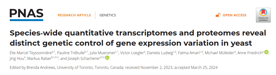 - Quantitative comparison of proteome and transcriptome across different natural yeast strains --> weak correlation