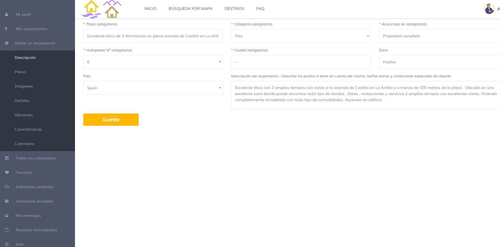 Editar alojamiento