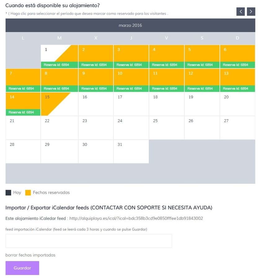 También puedes exportar tu calendario o importar otro calendario para que se muestre en la ficha de tu alojamiento o que tu calendario se muestre en otras webs o portales sincronizado con el de tu alojamiento.
