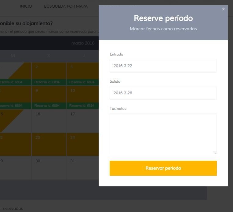 Podrás reservar periodos para que tu alojamiento no se muestre disponible en la web si has reservado ese periodo por otro medio o quieres disfrutar tú de tu vivienda en esas fechas.