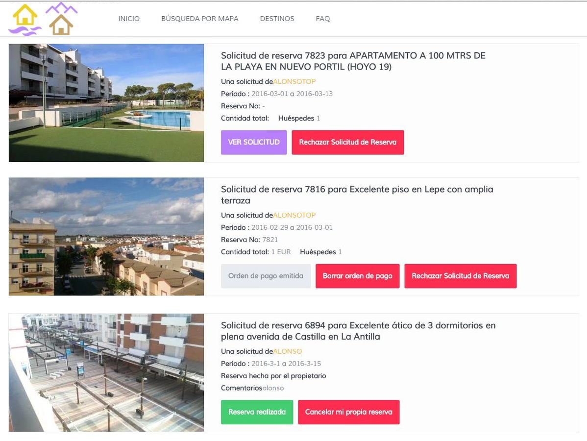 Gestión de alojamiento en Alquiplaya/Alquisierra.es