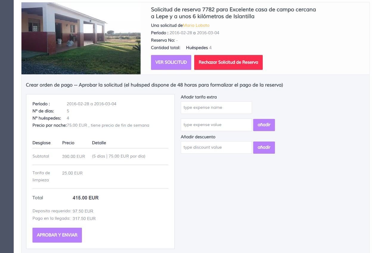 Al aprobar una solicitud podrás incluir tarifas extras o descuentos sobre el importe del alquiler si has acordado lo mismo con tu futuro huésped.