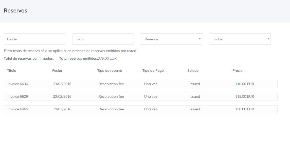 Desde aquí podrás ver las nuevas solicitudes de reserva, confirmar las mismas o rechazarlas. También podrás ver las solicitudes reservadas y pagadas y las que has reservado externamente al sistema.