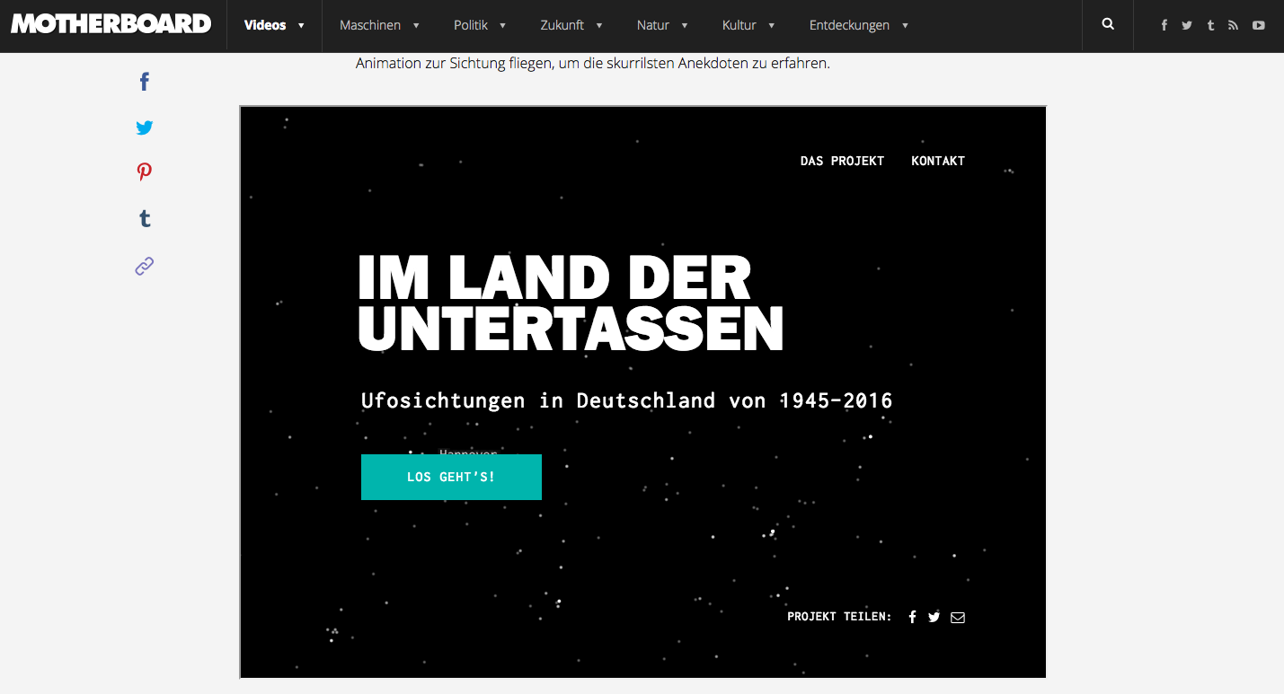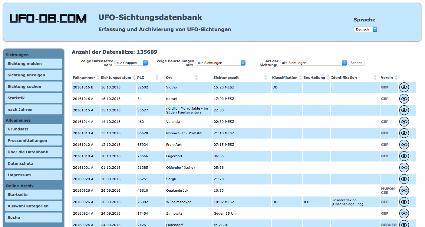 - Idea: Are people in Germany still reporting UFOs today? Where do they live? Are they crazy (maybe)?