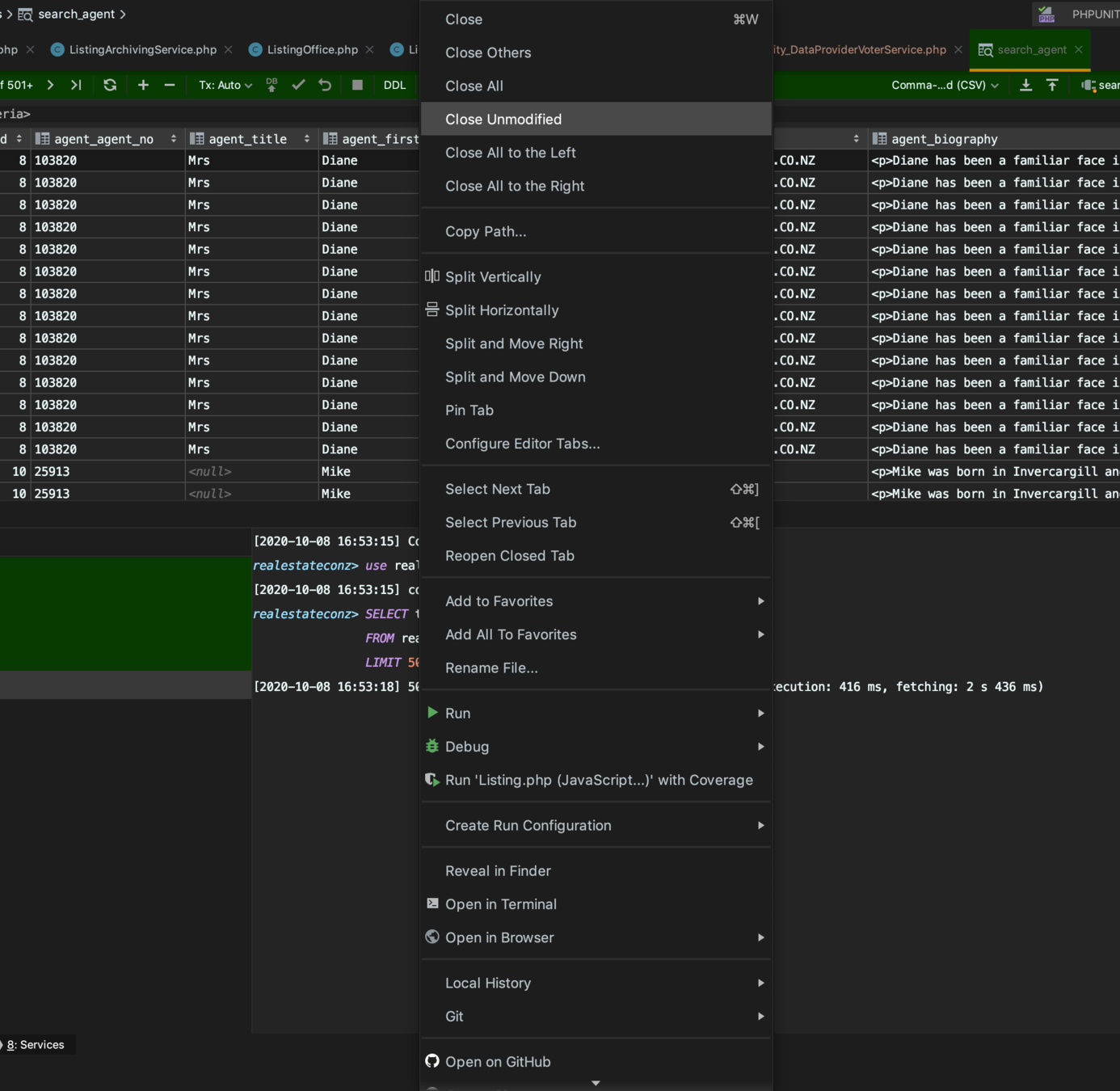 Quick Demo in Datalayer - ListingController.php