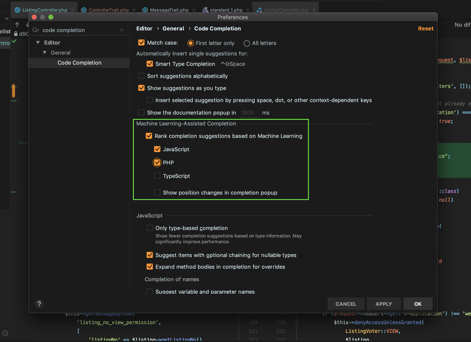 PhpStorm's code completion supports PHP 5.3, 5.4, 5.5, 5.6, 7.0, 7.1, 7.2, 7.3, 7.4, 8 (modern and legacy projects), including generators, coroutines, the finally keyword, list in foreach, namespaces,