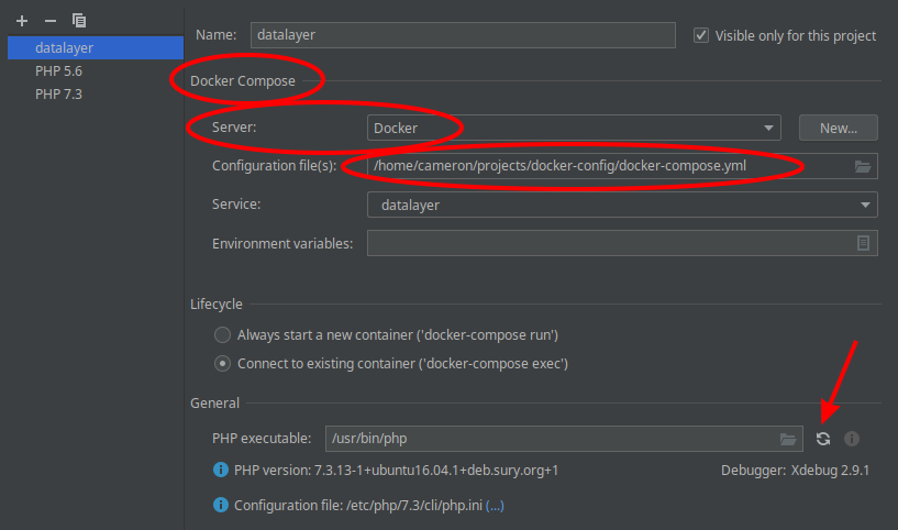 First step to integrate Docker & Xdebug is to set up an "interpreter". Clicking on the ... will allow creating a new interpreter