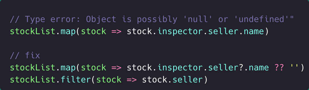 유저는 초기 진입 시 소속된 셀러가 없어 null 이 될수 있다. 재고 데이터는 셀러의 재고를 가져오기 때문에 null이 될 수 없는 값이다. 재고 데이터에서도 null 타입의 seller 데이터를 받고 있다.