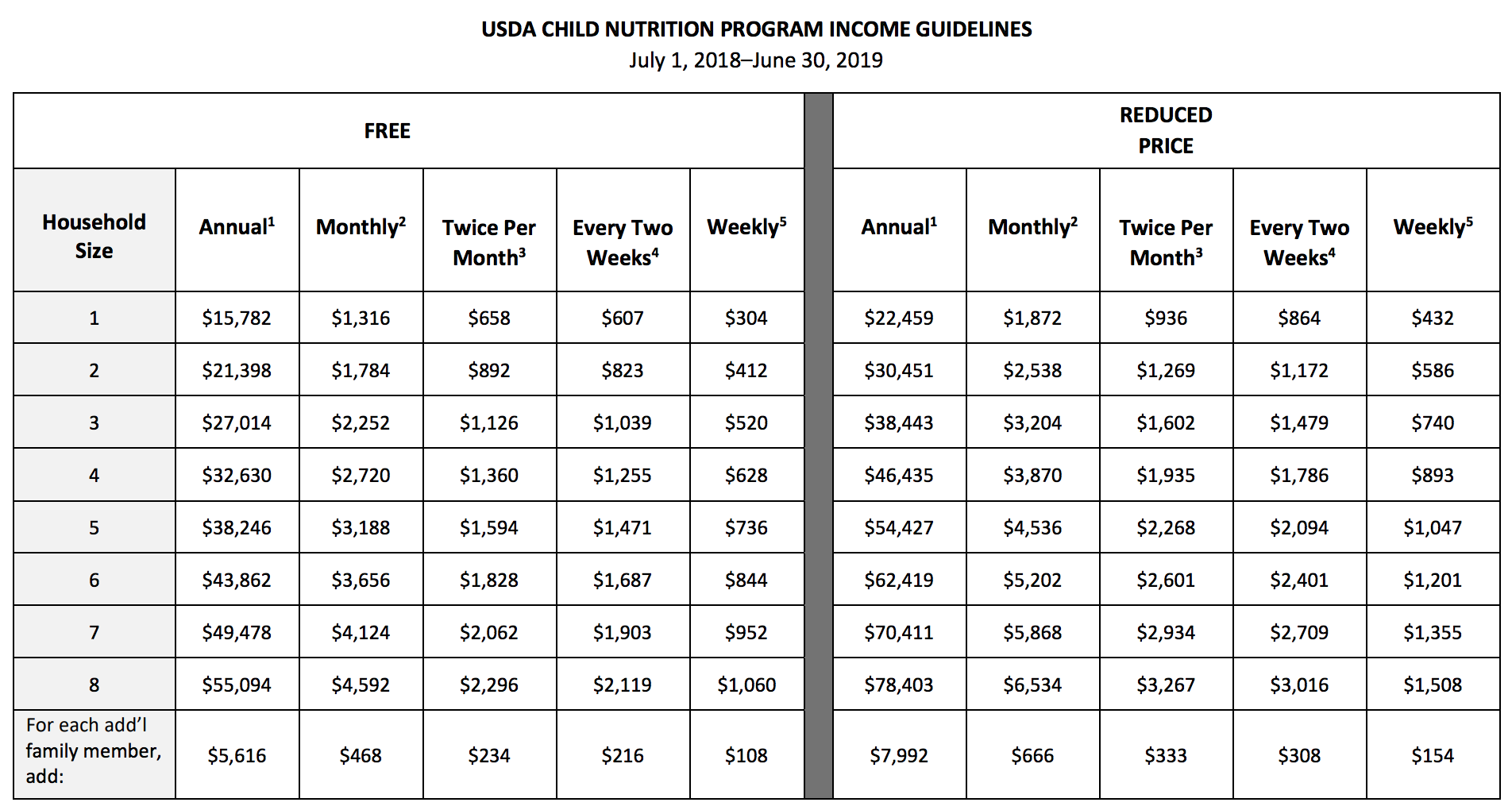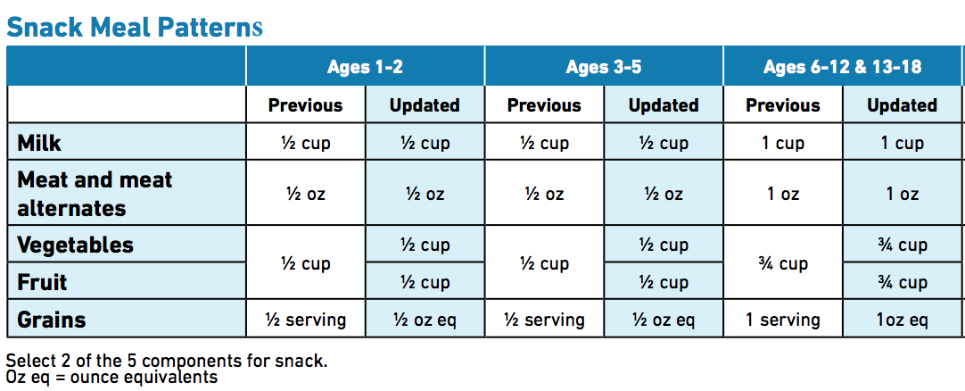 - Reimbursement rate of $.96 per snack