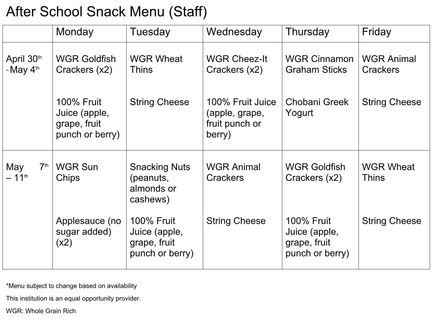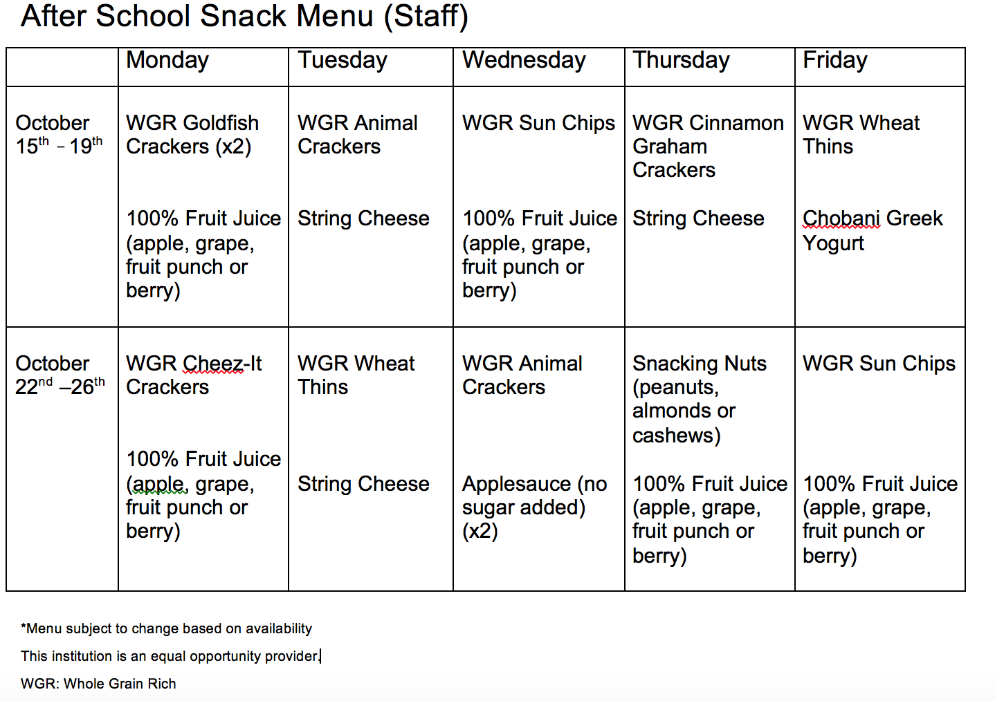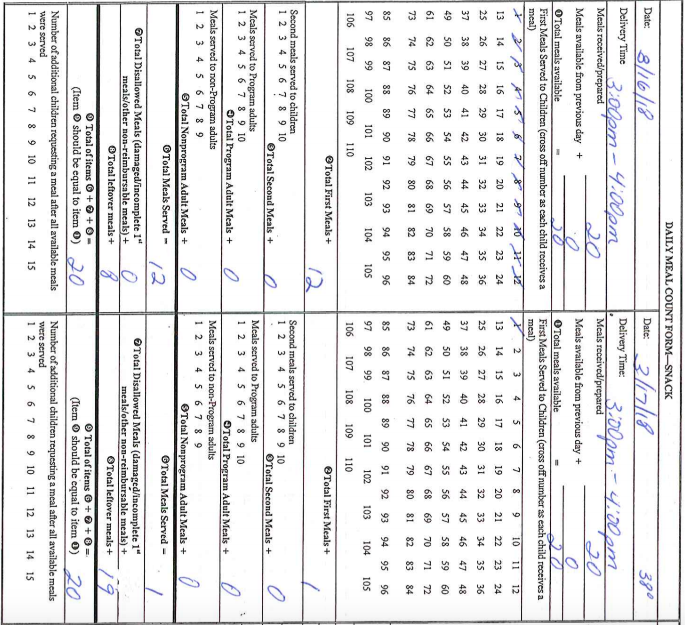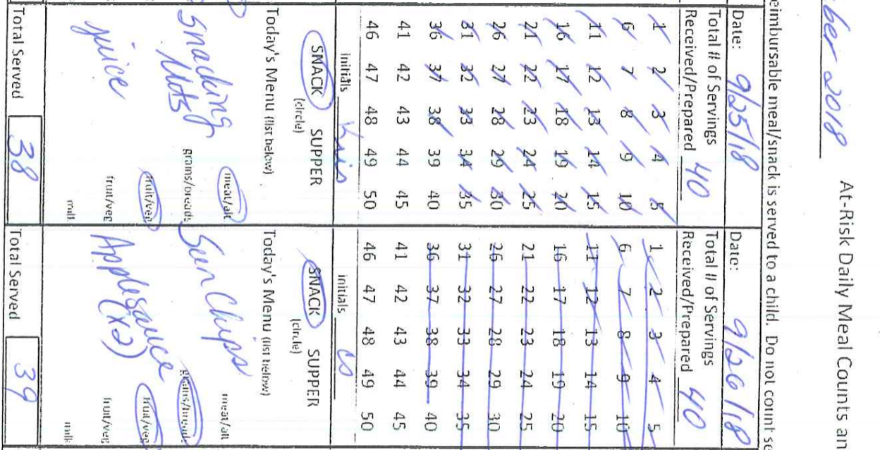- Reimbursement rate of $.94 per snack