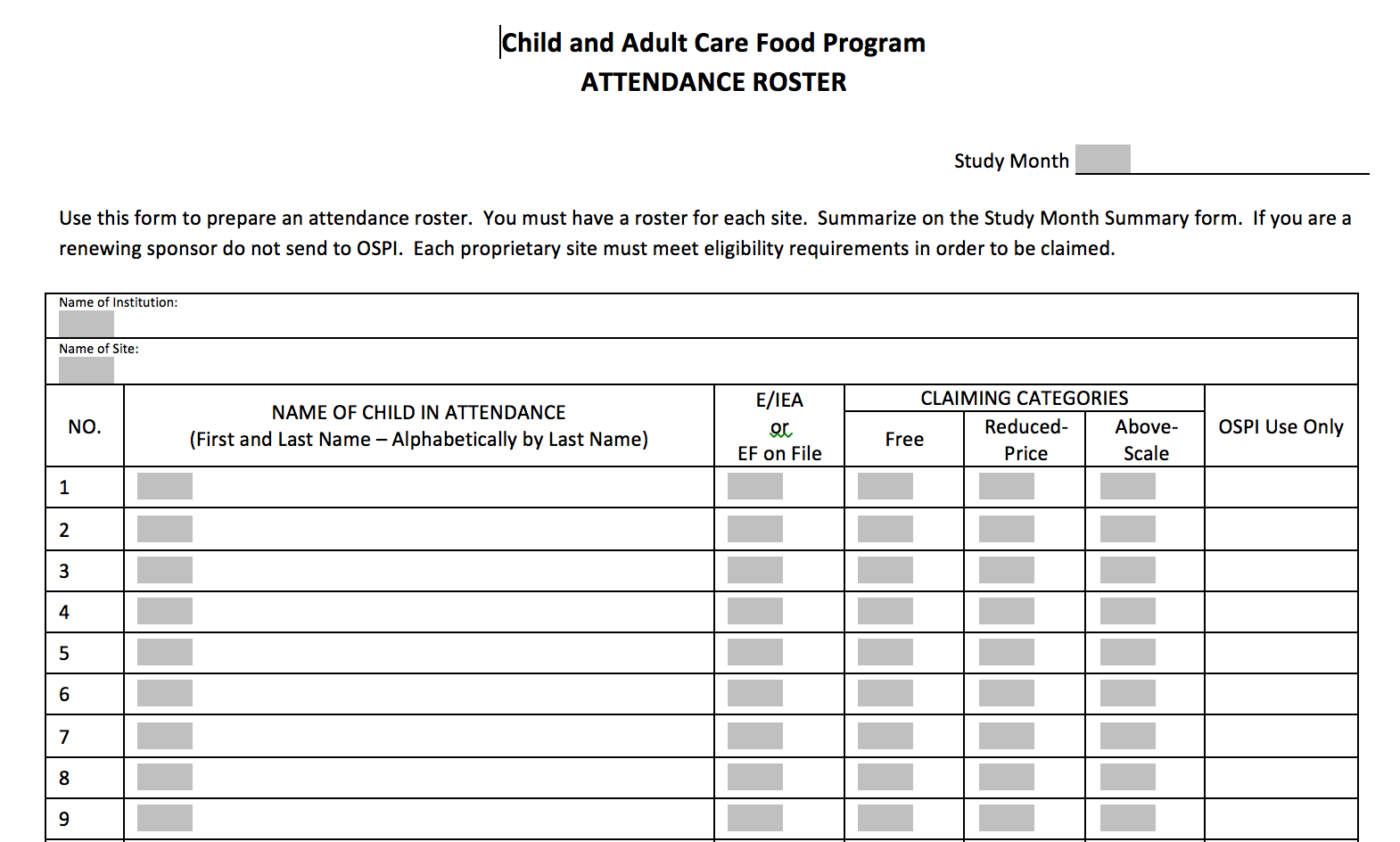 - CACFP- Child and Adult Care Food Program