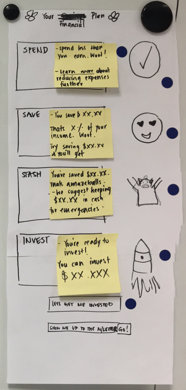 Great. Now we can test some of these ideas. Can you get started on anything while I do some mockups and usability tests?