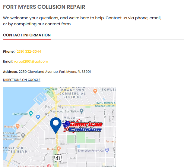 American Collision is Fort Myers’ first and only stop when you need collision repair, auto body repair, and dent repair. Experienced service backed by a lifetime warranty. For more information visit our website: https://americancollisiononline.com/