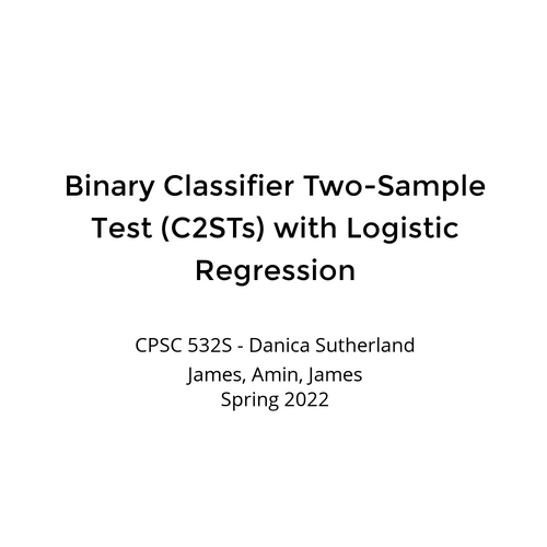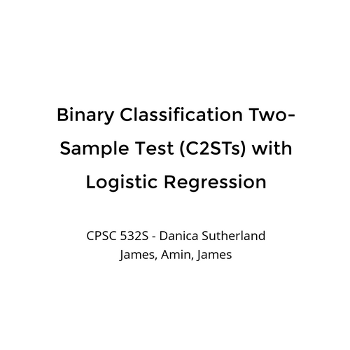 Binary Classification Two-Sample Test (C2STs) with Logistic RegressionCPSC 532S - Danica Sutherland