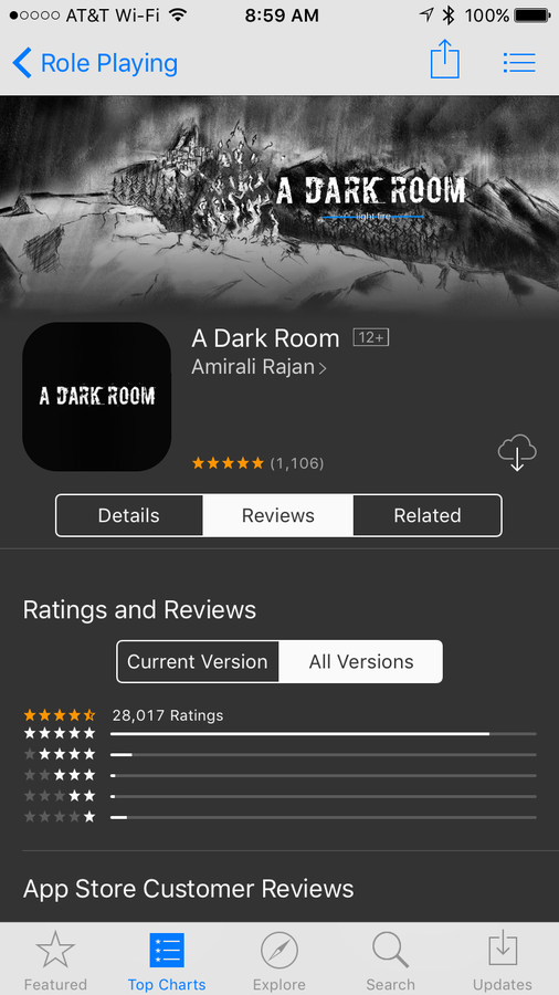A Dark Room iOS went viral in the UK and became the #1 app overall. Netting 23,000 paid downloads. US ranked remained unchanged.