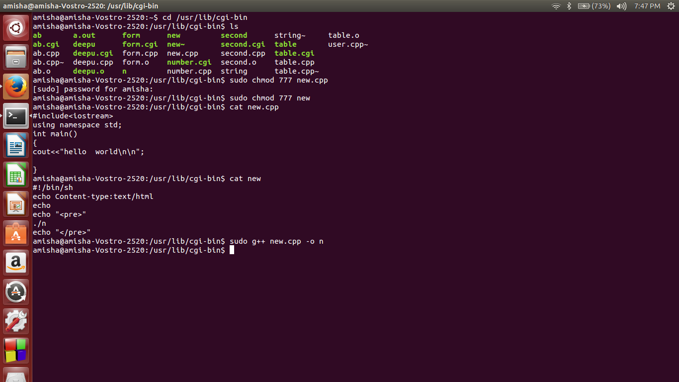 Finally, to get the output on Browser type the URL "localhost/cgi-bin/new".