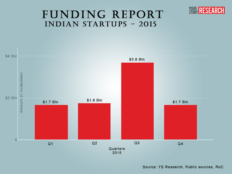 In the year 2015 in Q1, startups in India had raised close to $450 million, a 300% growth in the amount raised.
