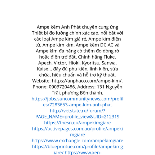 Website: https://anphaco.com/ampe-kim/. Đồng hồ Ampe kìm Anh Phát chuyên kinh doanh Thiết bị đo lường chính xác cao, nổi bật với các loại Ampe kìm giá rẻ, Ampe kìm điện tử, Ampe kìm kim, Ampe kềm DC AC và Ampe kìm đa năng có thêm đo dòng rò hoặc điện