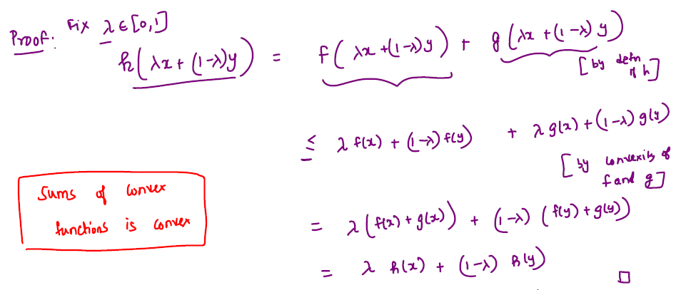 If \( f: \mathbb{R}^d \rightarrow \mathbb{R}, g: \mathbb{R}^d \rightarrow \mathbb{R}\) are both convex functions, then \( f(x) + g(x)\) is a convex function