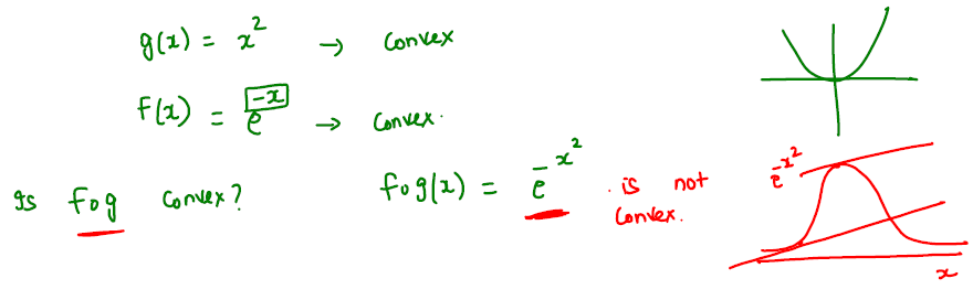 In general, if \(f\) and \(g\) are both convex functions, then \(h=fog\) may not be convex function.