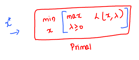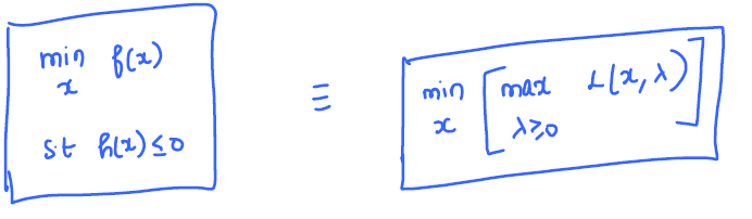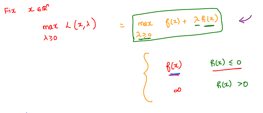 Note: depending upon if \(x\) is inside or outside the constrained set, we will get the objective value to be \(f(x)\) or \(\inf\).