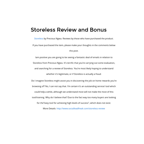 Storeless Review and Bonus