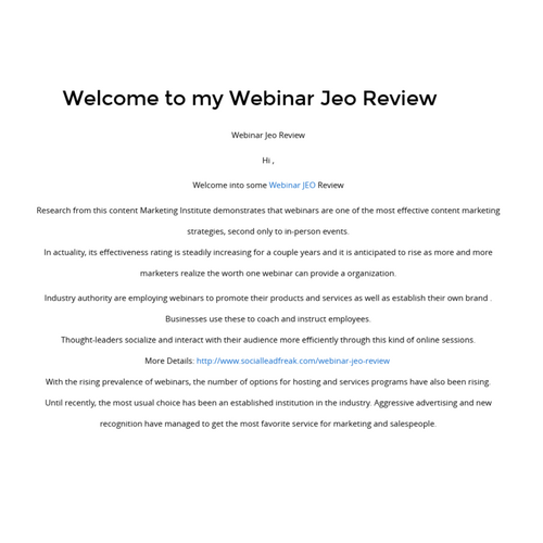 Welcome to my Webinar Jeo Review