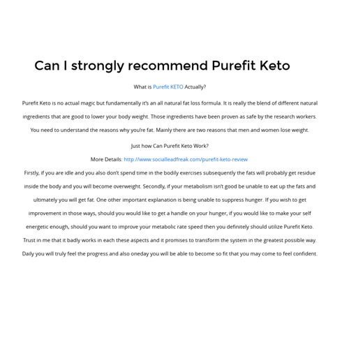 Can I strongly recommend Purefit Keto