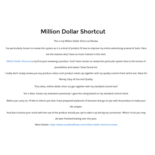 Million Dollar Shortcut