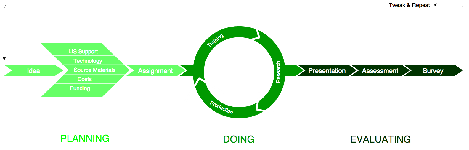 - Students populate an LIS-staff hosted spreadsheet in Google Drive to create their timelines