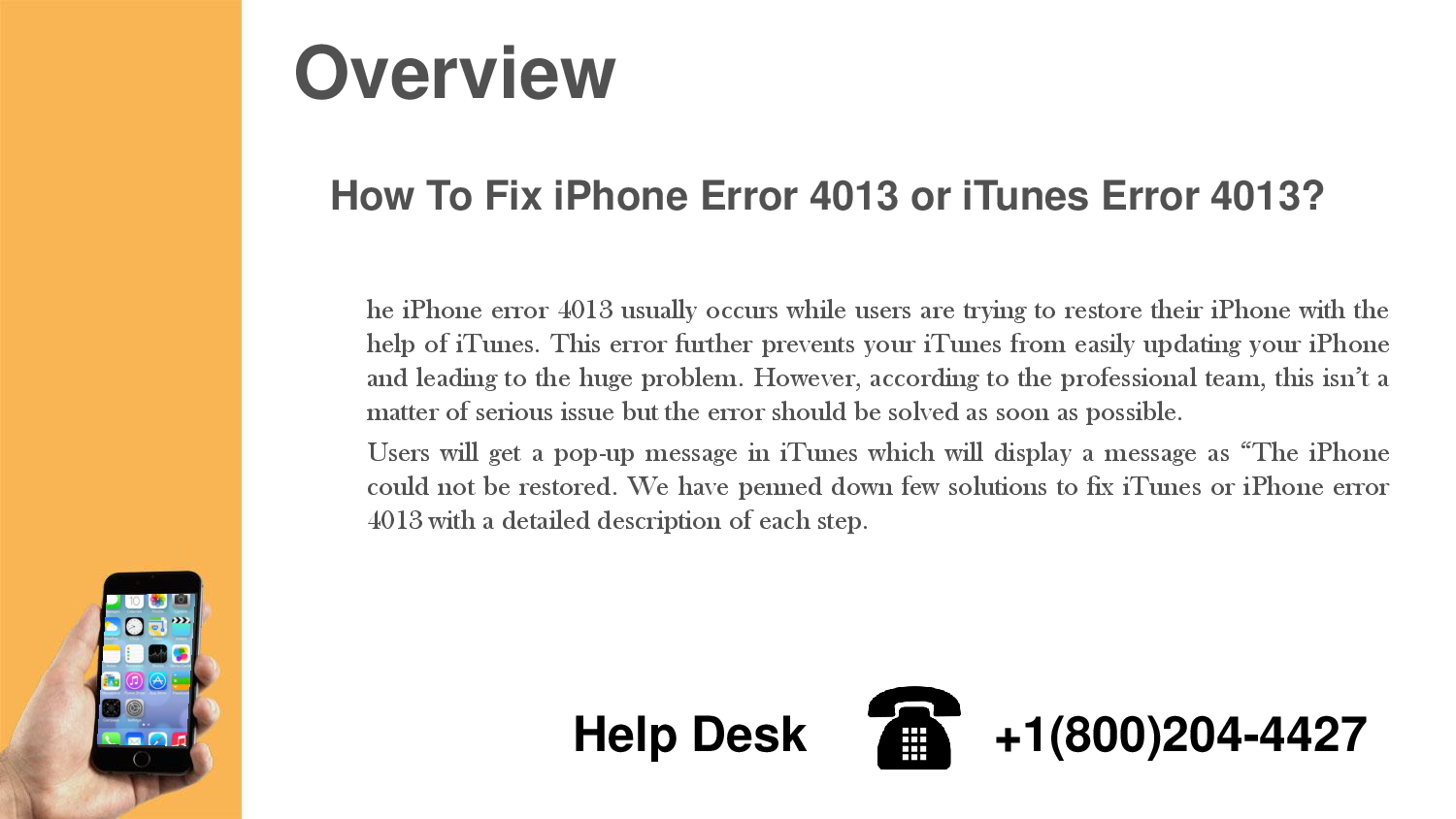 Complete Steps to Fix iPhone Error 4013, You can call iPhone Support Number 1855-341-4016 or follow the given Steps to Fix iPhone Error 4013 offered by Apple Customer Support team. Source: http://www.applemacsupportnumbers.com/blog/how-to-fix-itunes-or-iphone-error-4013/ For other helpful videos go to- https://goo.gl/fkDCh3 More support options for your Computer are available at https://goo.gl/aA8Q4Y