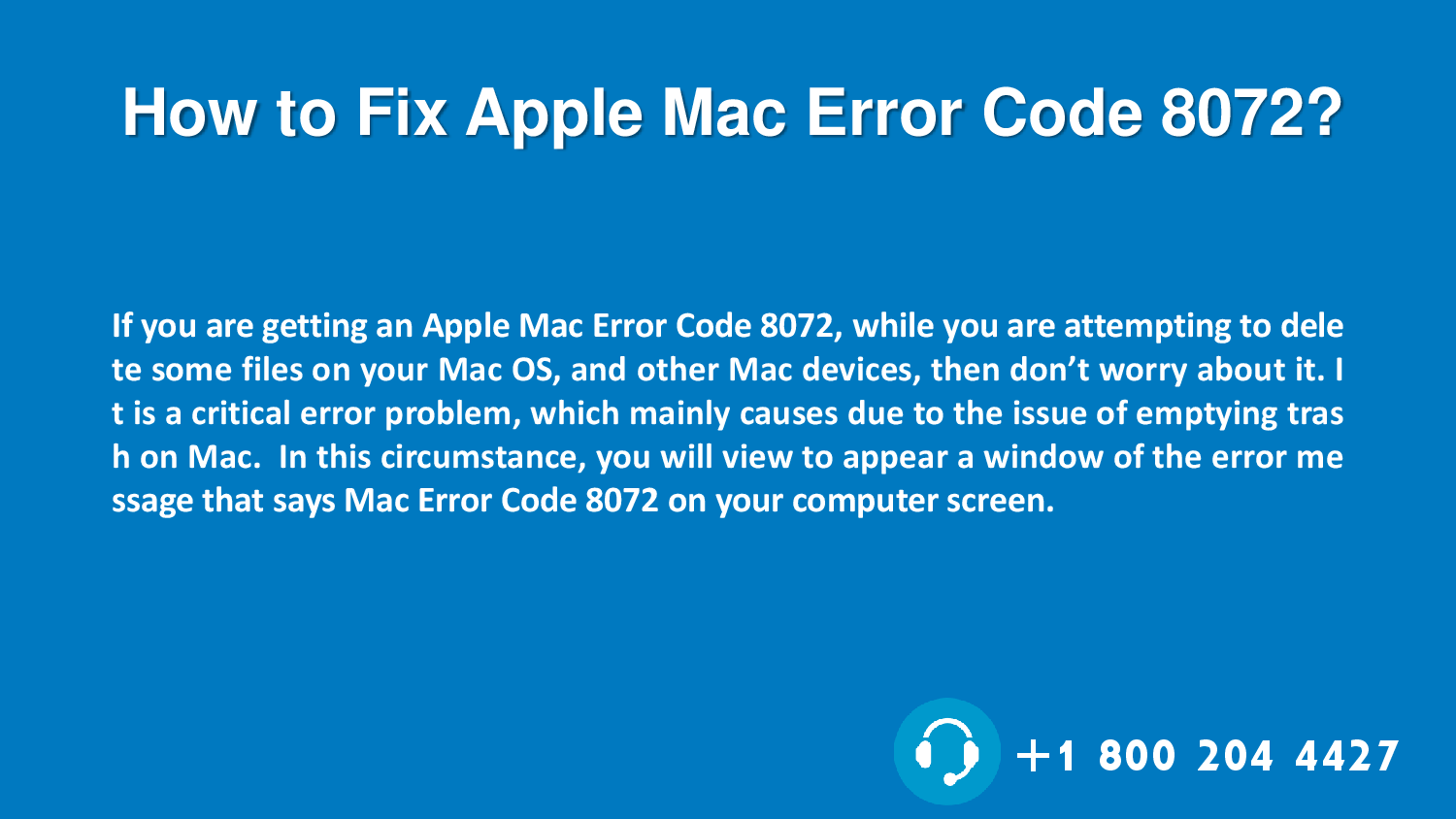 Complete Steps to Mac Error Code 8072, You can call Apple Mac Support Number 1855-341-4016 or follow the given Steps to Mac OS X Error Code 8072 offered by Apple Customer Support team. Source: http://www.applemacsupportnumbers.com/blog/how-to-fix-apple-mac-error-code-8072/ For other helpful videos go to- https://goo.gl/qmwT9N More support options for your Computer are available at https://goo.gl/TxGMR9 Mac Error Code 8072, Mac OS X Error Code 8072, Mac Support Number