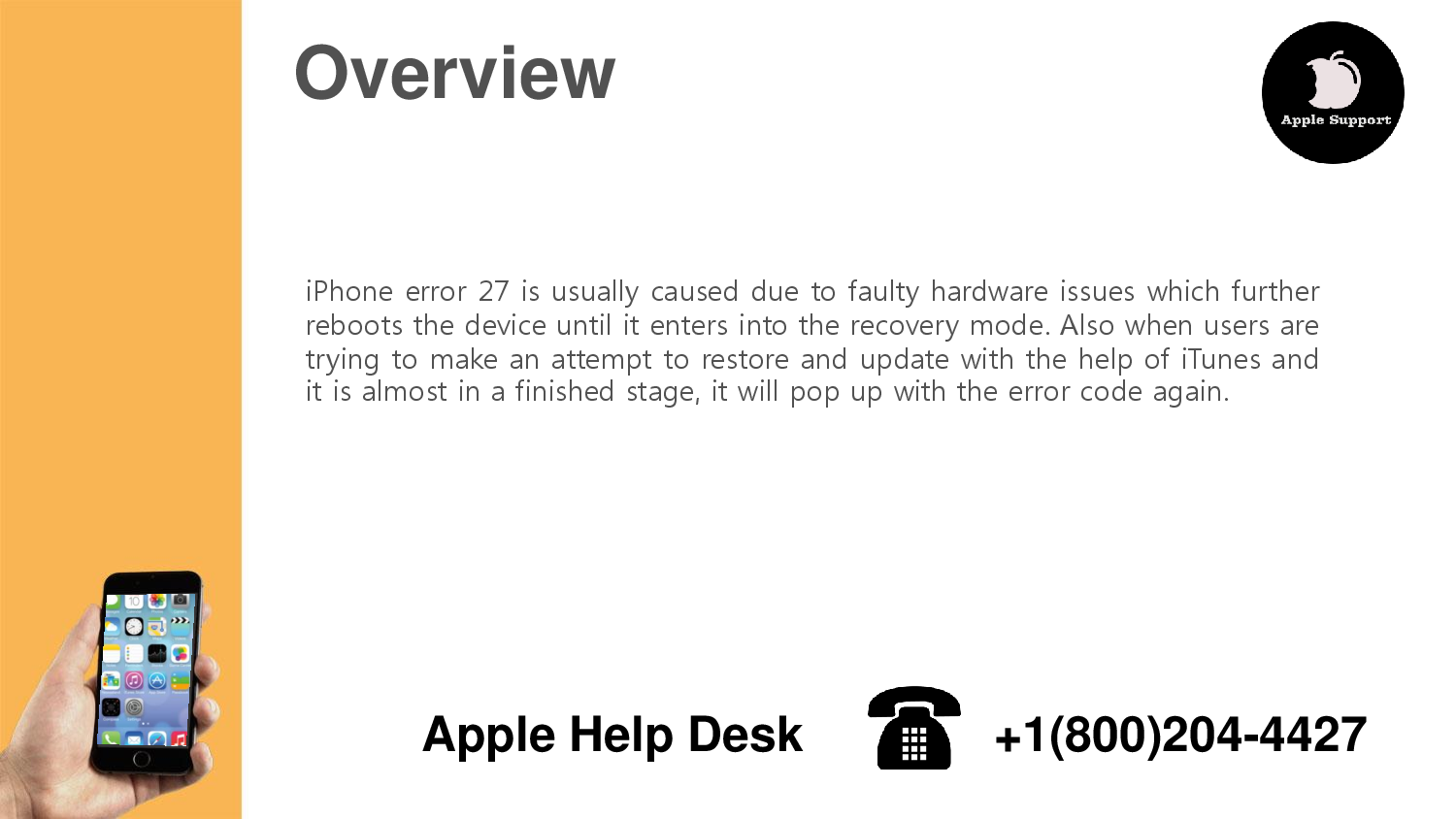 Complete Steps to fix iPhone Error 27, you can call Apple Customer Support Number 1855-341-4016 or follow the given Steps to Fix iPhone or iTunes Error 27 offered by Apple Technical Support team. Source: http://www.applemacsupportnumbers.com/blog/how-to-fix-iphone-error-27/ For other helpful videos go to- https://goo.gl/Psomy5 More support options for your Computer are available at https://goo.gl/nmw3M8
