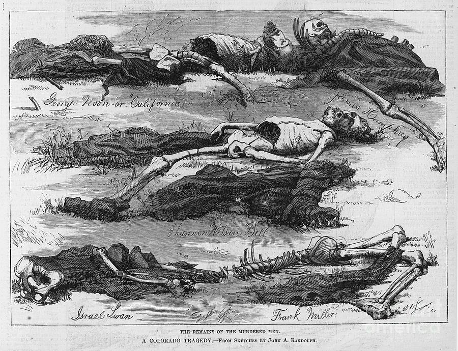 Alfred Packer bajó de la montaña en primavera, tan pobre como subió, barbudo como un profeta, descalzo y cubierto por el puro jirón, llevaba en el cinto un cuchillo de desollar y contó que sus compañeros habían muerto de inanición y, sin embargo, él no enseñaba los estigmas de la desnutrición. Una expedición de rescate encontró los cinco cuerpos despellejados y a medio comer, cuatro de ellos muertos a hachazos y el otro de un tiro en la pelvis.
