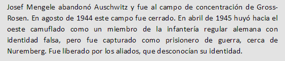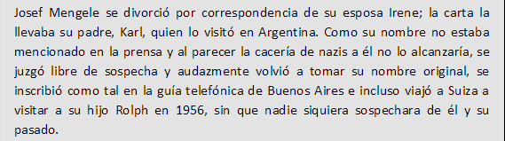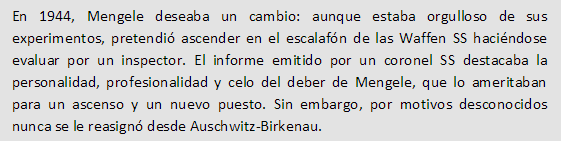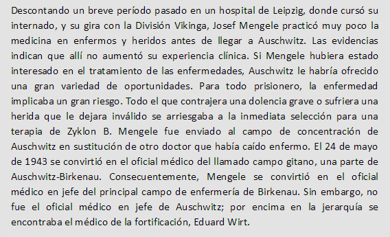 Josef Mengele nació el 16 de marzo de 1911 en la ciudad bávara de Gunzburgo, En 1935 Mengele obtuvo un doctorado en antropología por la Universidad de Múnich y en enero de 1937 entró en el Instituto de Biología Hereditaria e Higiene Racial de Fráncfort le valió la consecución de un doctorado en medicina en 1938. Mengele contrajo matrimonio el 28 de julio de 1939 con Irene Schönbein, a quien había conocido en Leipzig mientras trabajaba como médico residente. Su único hijo, Rolf, nació en 1944.