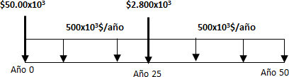 | Rehabilitación (año 25)= | $2.800 x 103 |