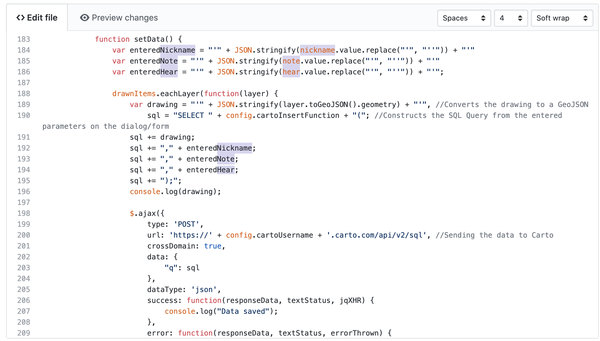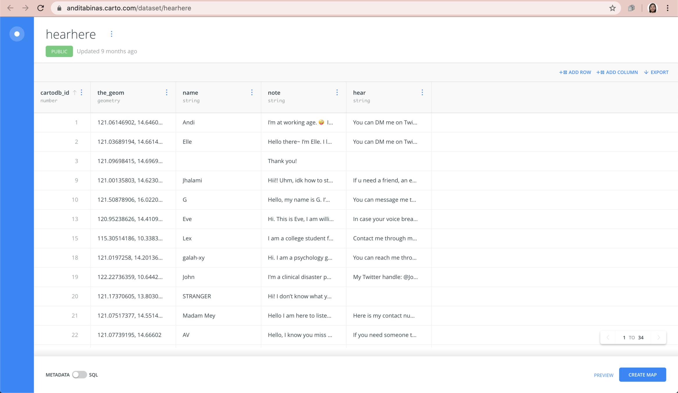 Do not change "nickname" in the codes if you are using the Name column in carto.