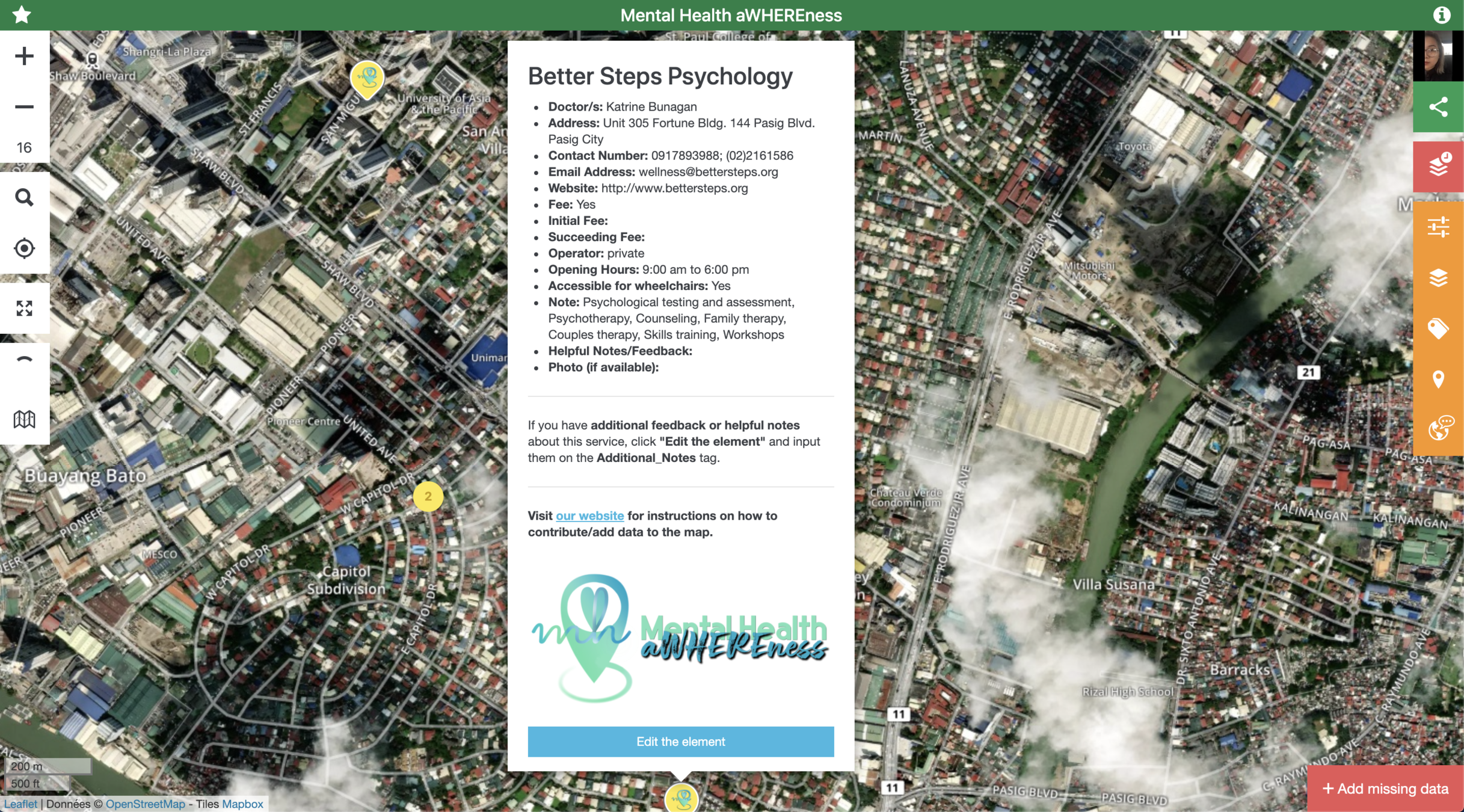 Mental Health AWHEREness aims to promote mental health awareness through information, education, communication, and mapping of available mental health services and their corresponding important information that would help and encourage people to seek mental healthcare without telling others until they are ready to do so; and to tell decision-makers where more mental health services are needed.